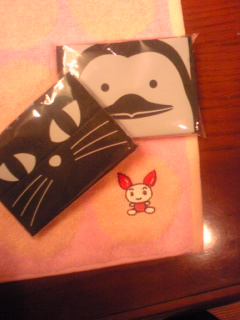 黒いのは、街でもらったティッシュ。黒いティッシュ。ネコとペンギンの絵付き。かわいい。