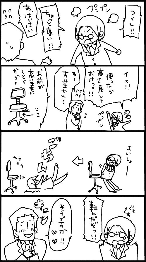 あい、椅子って言えば、笛吹さんは一番低くしないと座れない感じがいいと思います。↓