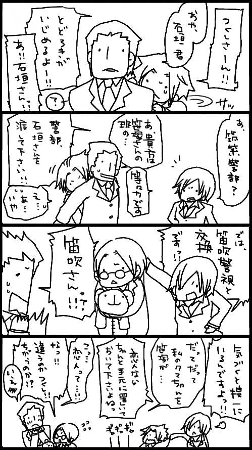 …にしても、いつもの執務室からパイプ椅子&ステンレスの机とは、笛吹さん、X捕獲失敗の責任取らされたんでしょうかね…。