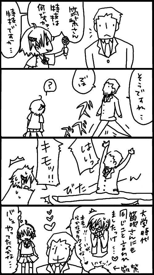 ビックリして失神して、それをいいことに(息してるにもかかわらず)人工呼吸しようとする柔道筑紫!もちろんマウスツーマウス!